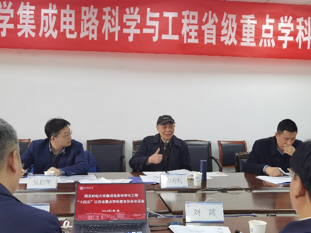 在听取工作汇报后,专家组充分肯定了集成电路科学与工程学科建设已有的良好基础及未来建设举措,并围绕人才培养、科学研究、队伍建设、学科特色凝练和社会服务等方面进行了质询和讨论,提出了论证意见和建议。郑院士建议,南邮发展集成电路,首先要围绕通信领域进行规划与布局,发挥交叉学科优势,突出南邮特色;同时加强与南通研究院等产学研合作机构的协同发展,科学研究和社会服务不分家。郑院士还鼓励南邮更加注重人才培养质量,搏击浪头勇争先,抢占IC人才培养高地,把为国家培养人才作为学科建设的重要抓手。