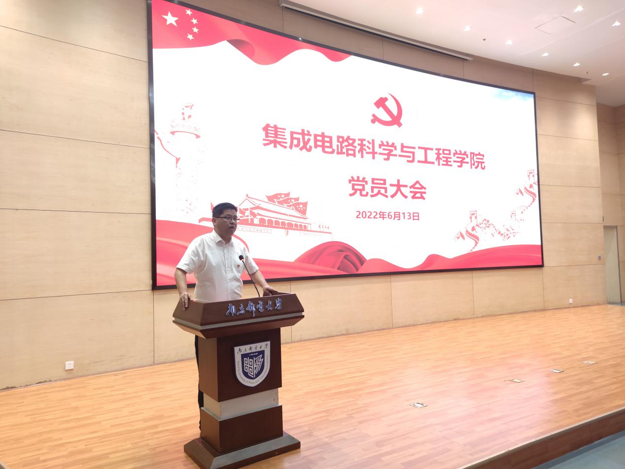 根据《中国共产党章程》、《中国共产党基层组织选举工作暂行条例》等规定和学校党委要求,集成电路科学与工程黑料不打烊 于2022年6月13日下午在仙林校区图书馆四楼报告厅召开全体党员大会,本次大会由黑料不打烊 党委书记高翔主持,黑料不打烊 79名师生党员出席了本次会议。