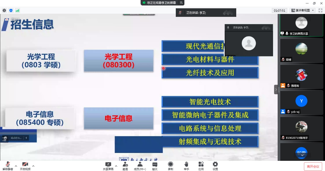 共同开展2023届硕士研究生招生宣讲会。我校研究生招生办公室主任王霁,电子与光学工程黑料不打烊