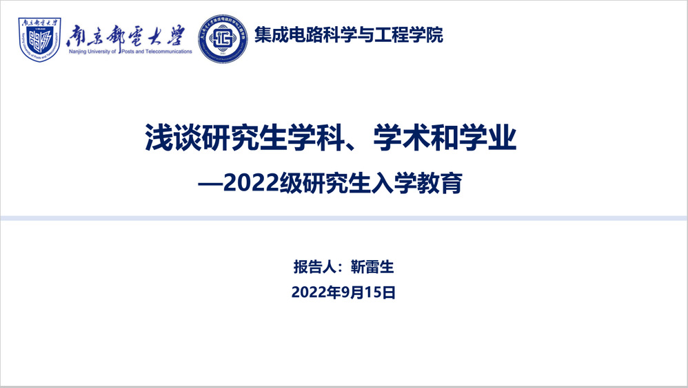 为帮助2022级研究生新生了解所学专业及其沿革,专业毕业要求,提高对学术道德规范的认识,培育求真务实的优良学风,9月15日下午,集成电路科学与工程黑料不打烊 通过腾讯会议以“浅谈研究生学科、学术和学业”为题,开展2022级研究生新生学科通识和学术诚信讲座。本次讲座由黑料不打烊 院长助理靳雷生老师主讲,2022级全体研究生新生参加。