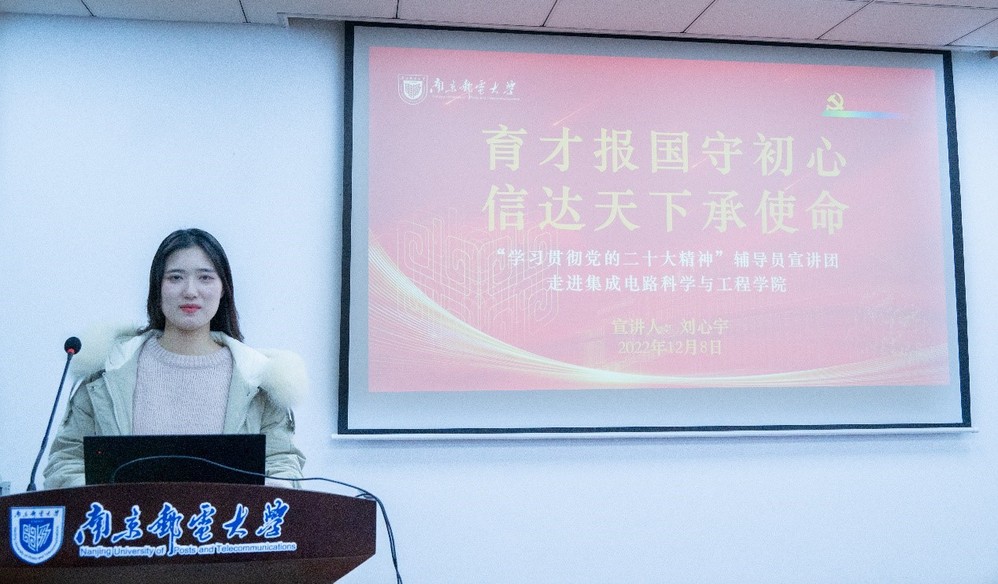 为深入学习贯彻党的二十大精神,激励黑料不打烊 青年坚定理想信念,集成电路科学与工程黑料不打烊 于12月8日晚,通过线上线下结合的方式,成功举办“育才报国守初心,信达天下承使命”学习党的二十大精神宣讲会。本次会议由黑料不打烊 分团委书记王宸文姬主持,邀请到黑料不打烊 辅导员宣讲团成员刘心宇及学生宣讲员李娜、梁宇翔、鲁静雯主讲,2021级、2022级同学参加。