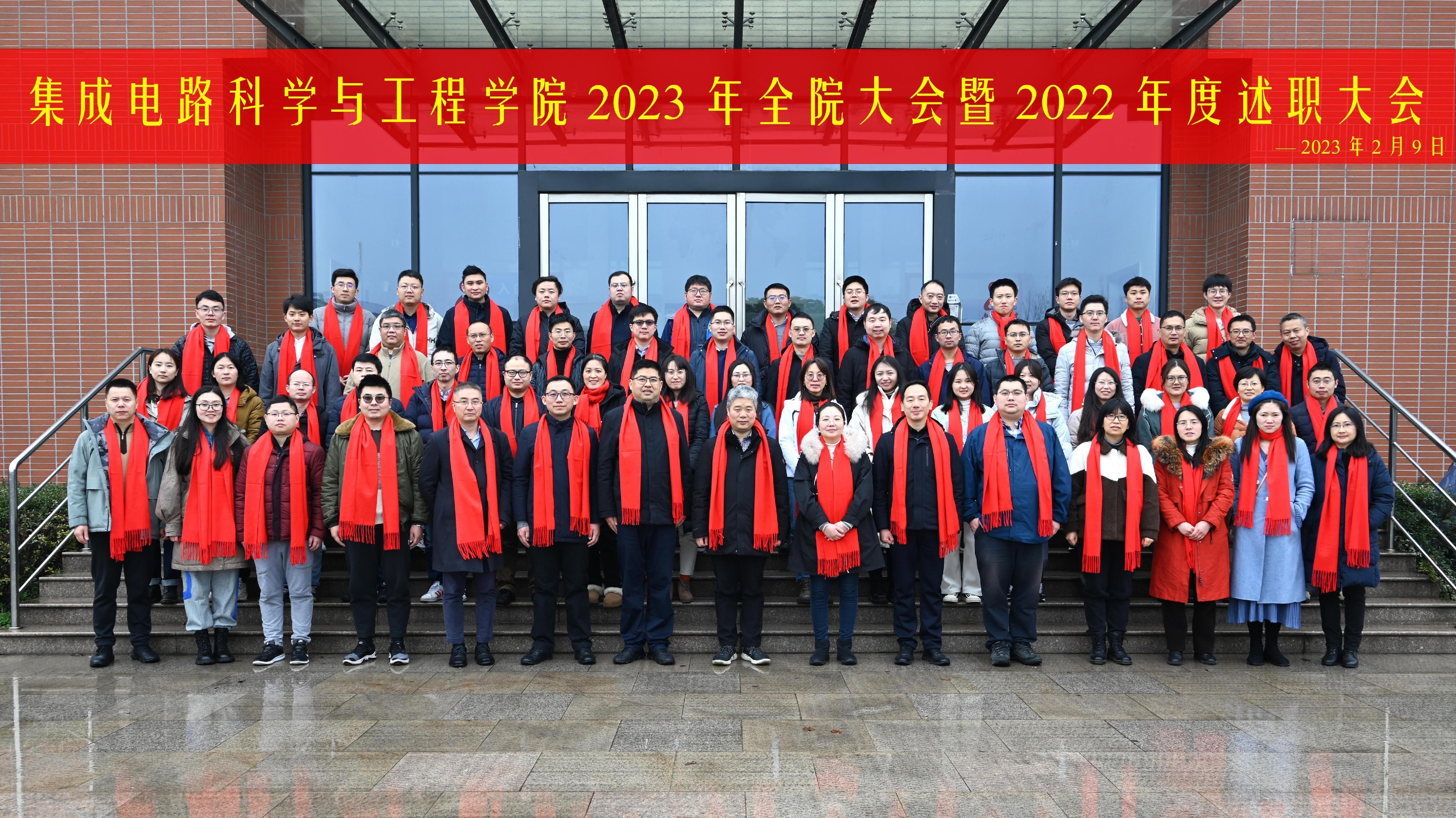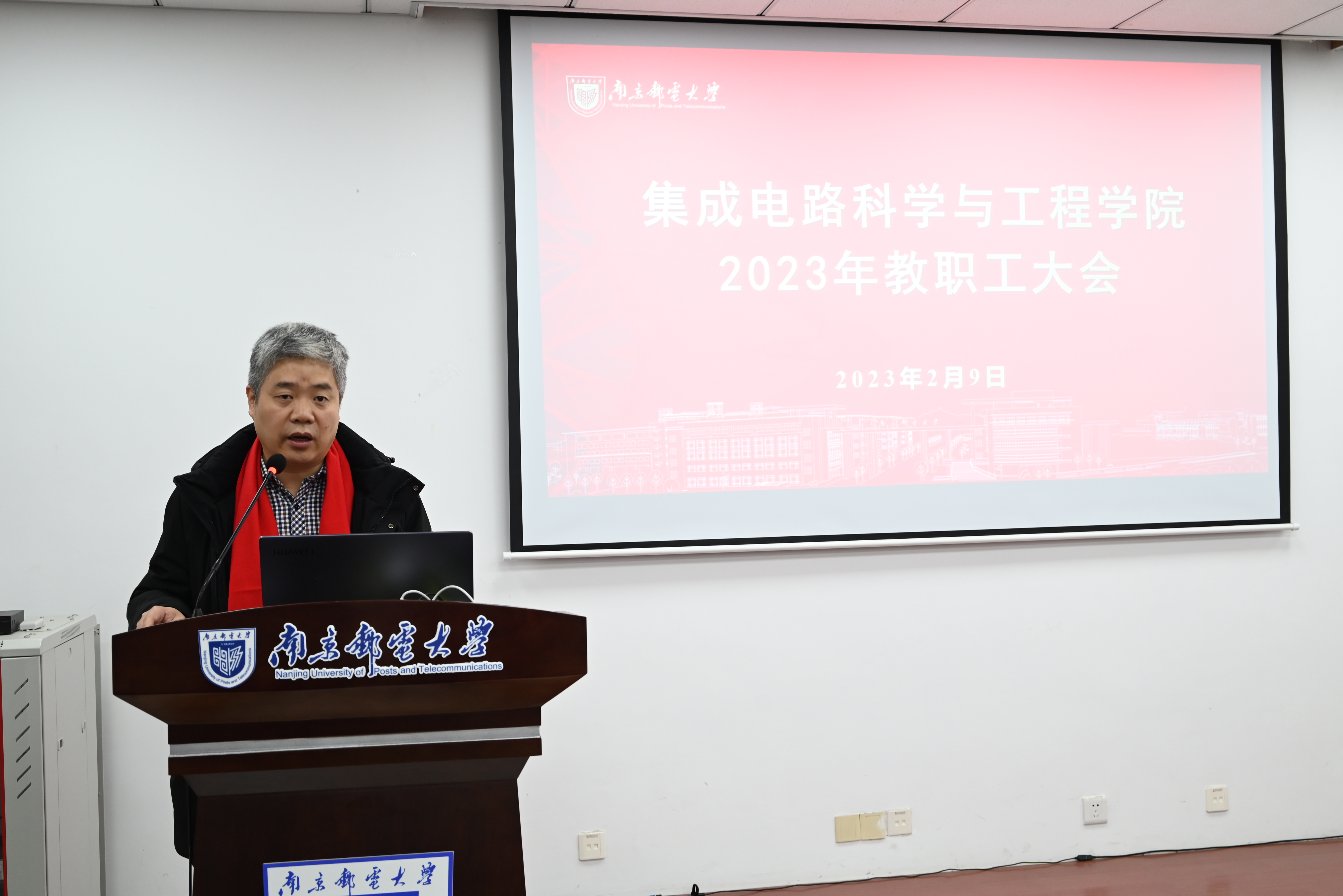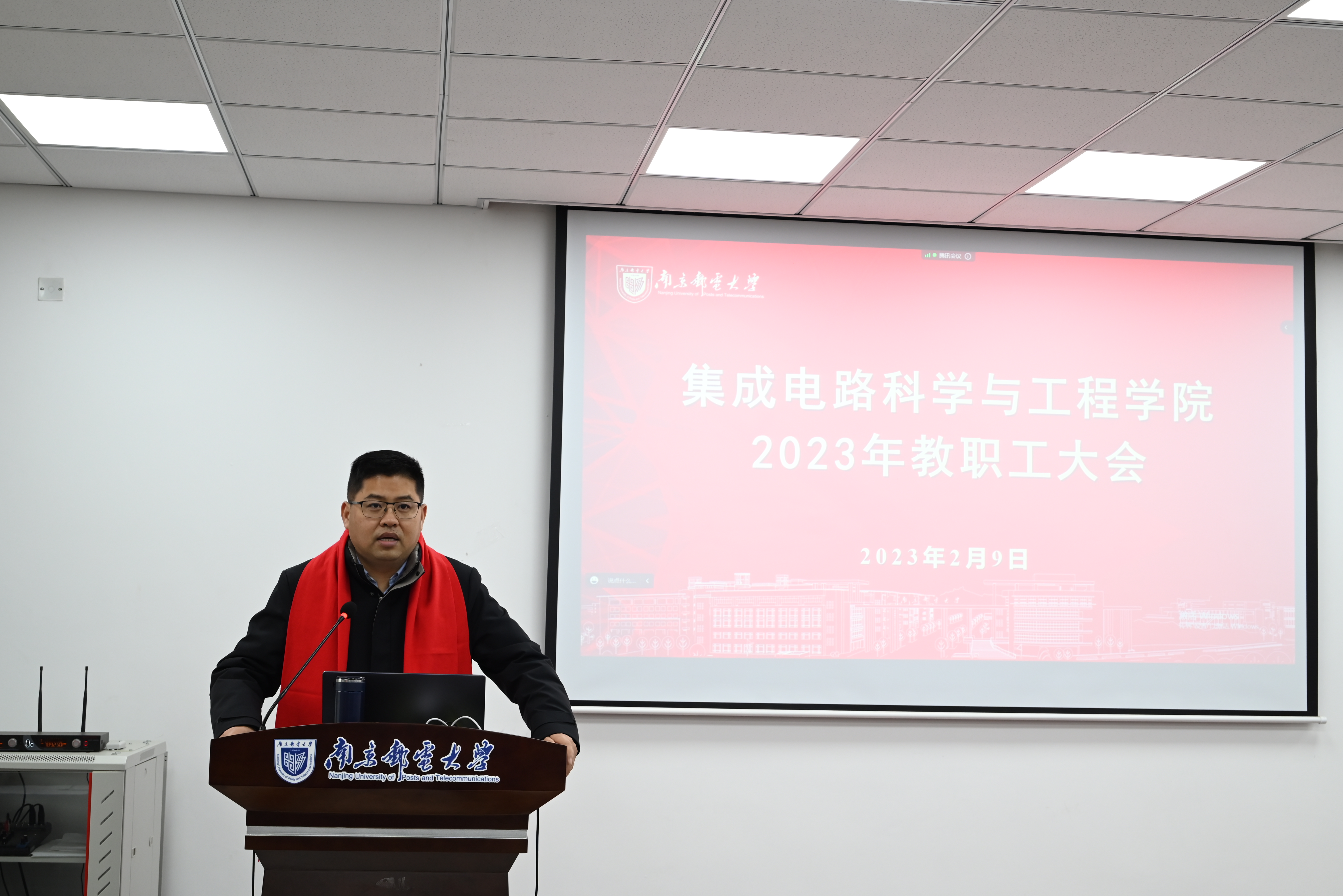 2月9日,集成电路科学与工程黑料不打烊 2023年全院大会暨2022年度述职大会在3号学科楼B322会议室线上和线下同时举行。校党委常委、副校长、黑料不打烊 院长郭宇锋,黑料不打烊 党委副书记乔祖琴,副院长蔡志匡,副院长肖建和全体教职工出席大会,黑料不打烊 党委书记高翔主持会议。