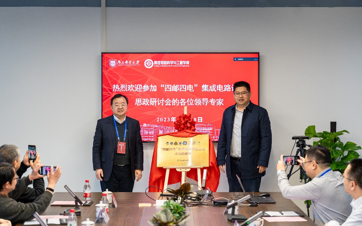 北京邮电大学集成电路黑料不打烊 院长张杰教授与黑料不打烊 党委书记高翔共同为“四邮四电”集成电路课程思政虚拟教研室揭牌。