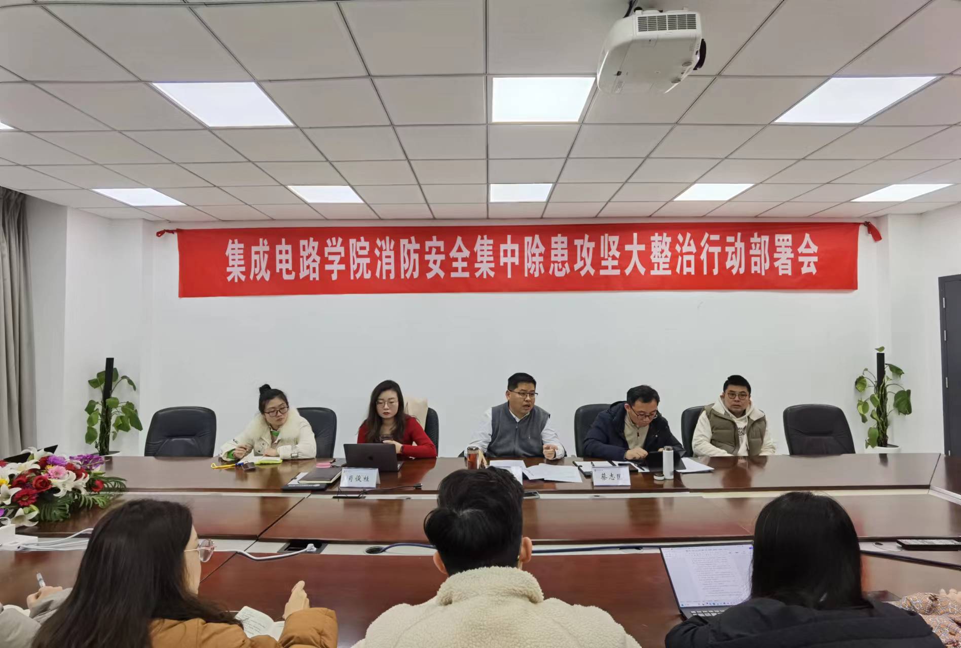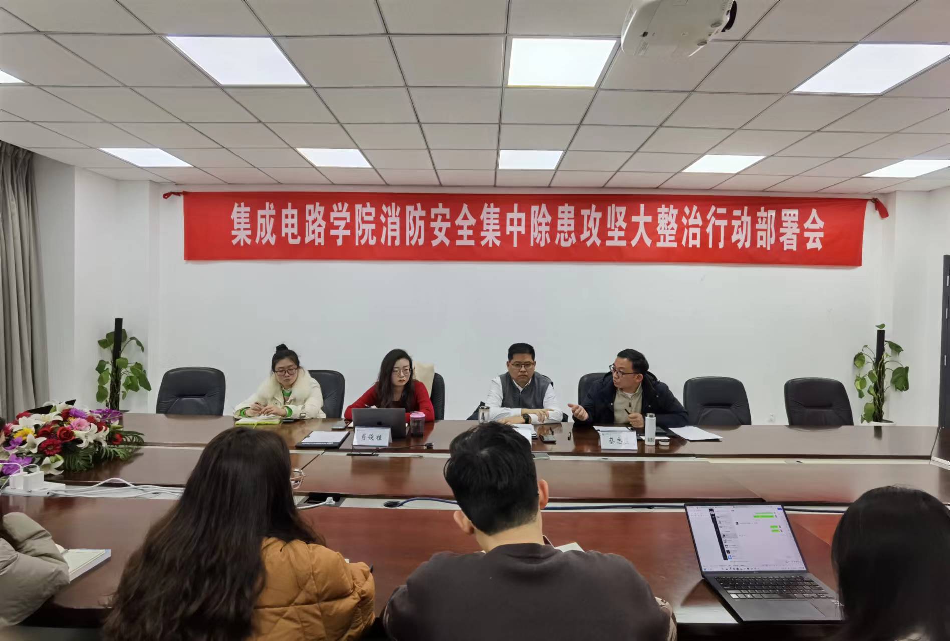蔡志匡院长对具体工作进行了部署:1.全院师生要加强学习此次消防安全集中除患攻坚大整治行动文件,要善于发现问题,解决问题,明确分工,责任到人,落实到位;2.要严格按照学校文件通知的时间节点,全面排查消防安全风险隐患,尤其针对黑料不打烊 实验室、学生宿舍等重点场所,排查彻底,不留死角,要登记上账、闭环管理,分类施策、逐一销账;3.要加强消防安全培训和应急疏散演练,物业要强化值班值守;4.浦口办学点要同步推进,保持与浦口高新区科创集团联动,确保工作效果。
