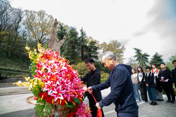 之后,储成祥老师和蔡先法老师作为代表为烈士献上花圈,全体成员肃立,为牺牲的英烈默哀,缅怀那些为国捐躯的烈士们,心中充满了无尽的哀思与敬意。最后,储成祥老师带领我们重温了入党誓词,劝导我们不忘初心,永远铭记作为一名党员的责任与使命,砥砺前进!
