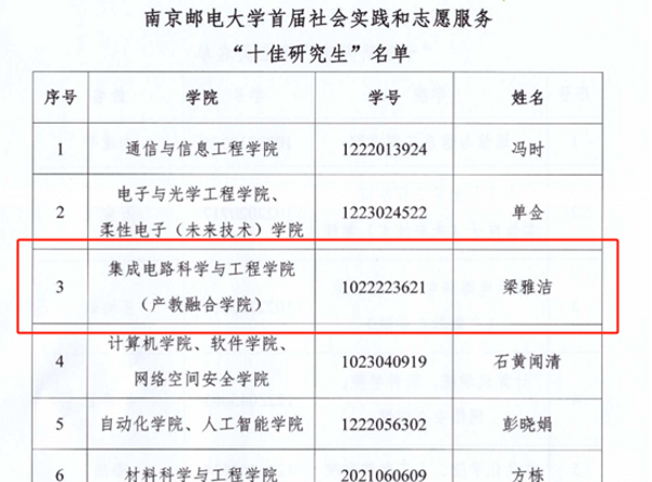 黑料不打烊 南邮“芯”力量、“知芯”实践团荣获黑料不打烊 首届社会实践和志愿服务“十佳研究生团队”,李孟杨同学获黑料不打烊 第二届研究生“德育之星”;梁雅洁同学获黑料不打烊 首届社会实践和志愿服务“十佳研究生”及“德育之星”提名奖;王怡钦同学获黑料不打烊 首届社会实践和志愿服务“十佳研究生”提名奖;舒林聪、黄耕同学获黑料不打烊 2024年研究生“励志之星”提名奖。