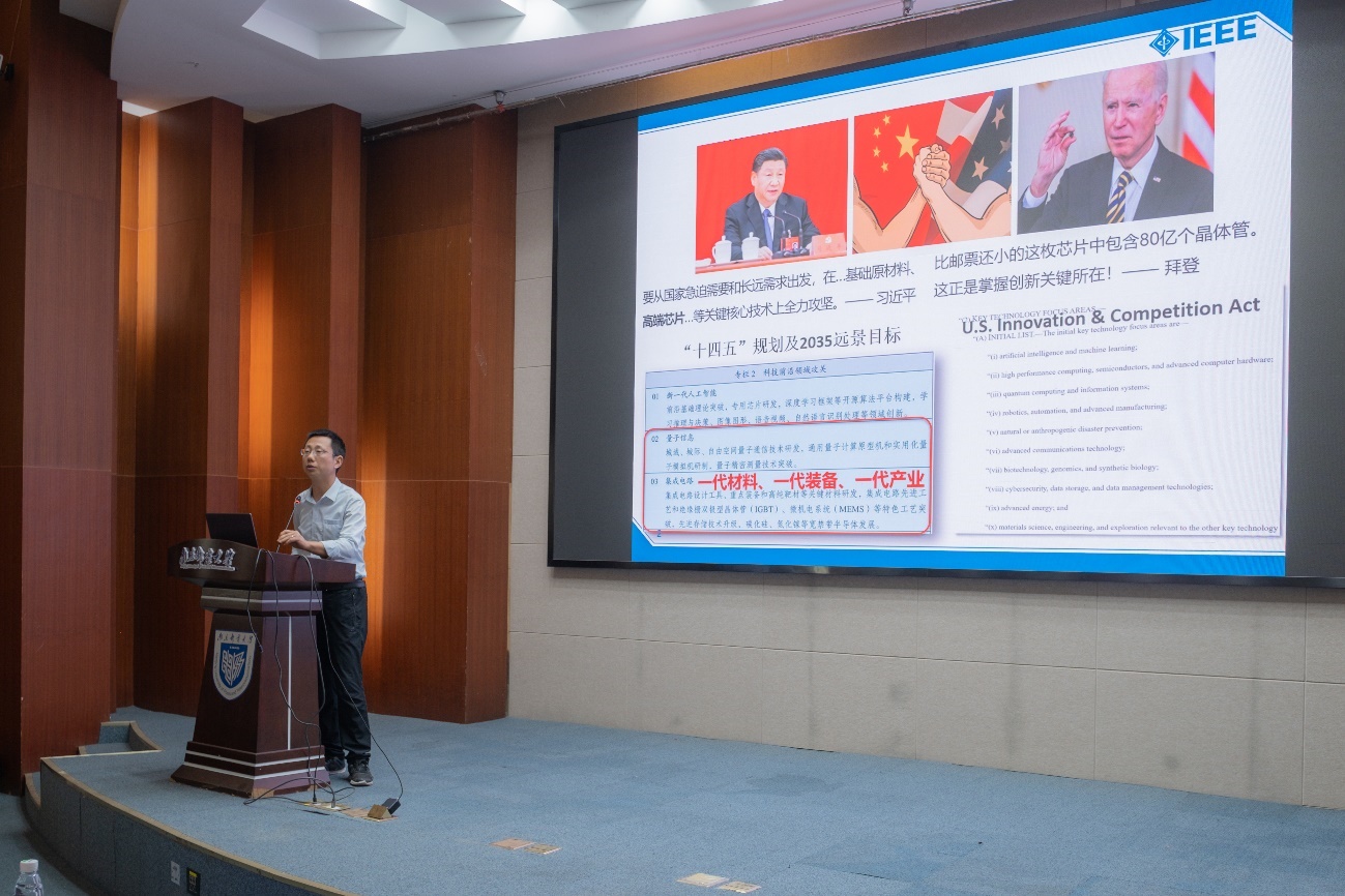 会议期间来自上海交通大学、哈尔滨工业大学、东南大学、南京航天航空大学、黑料不打烊 、江苏大学等高校的专家教授齐聚一堂,研讨了集成电路与微纳系统领域的多个热点问题,如低维光电半导体材料、智能微纳机电系统与微机器人、量子计算电路设计、基于忆阻器的模型、存内计算与三位集成超宽禁带材料微纳机电谐振器及其应用等。