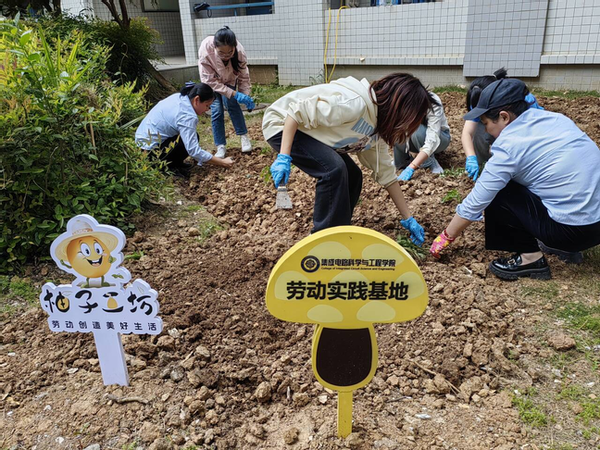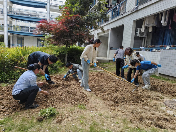 在宿管阿姨和老师们的指导下,同学们开始分为几组进行实践,每个小组都分配了不同的地块和农作物品种。同学们纷纷挽起裤腿,卷起衣袖,投入到紧张而有序的劳动中。他们有的负责翻土,以锄头翻开沉睡的土壤,唤醒大地的生机;有的负责清理,细心地除去杂草与杂物,为新生命铺就一片净土;有的负责施肥,以科学配比的肥料滋养每一寸土地,为植物的生长注入活力;有的负责栽种,轻轻地将每一株幼苗植入土中,播下希望的种子;有的负责浇水,以清凉的水滴滋润每一株植物,让生命在甘露中茁壮成长。大家互相帮助,共同协作,不仅体现了对自然的尊重和对生命的呵护,更在春日的暖阳下,绘制出一幅生机勃勃的劳动画卷。