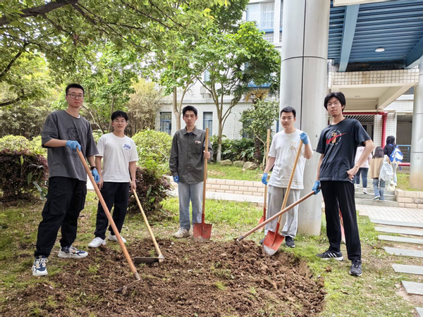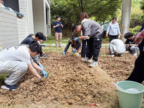 劳动教育作为培养学生素质全面发展的重要途径,不仅能够锻炼学生的实践能力,还能增强其社会责任感。4月25日下午,院分团委书记王宸文姬老师、2023级本科生辅导员刘志敏老师以及竹苑宿管阿姨,带领B230306班15名同学在竹苑劳动实践基地--“芯”愿工坊开展科学栽苗等实践活动。