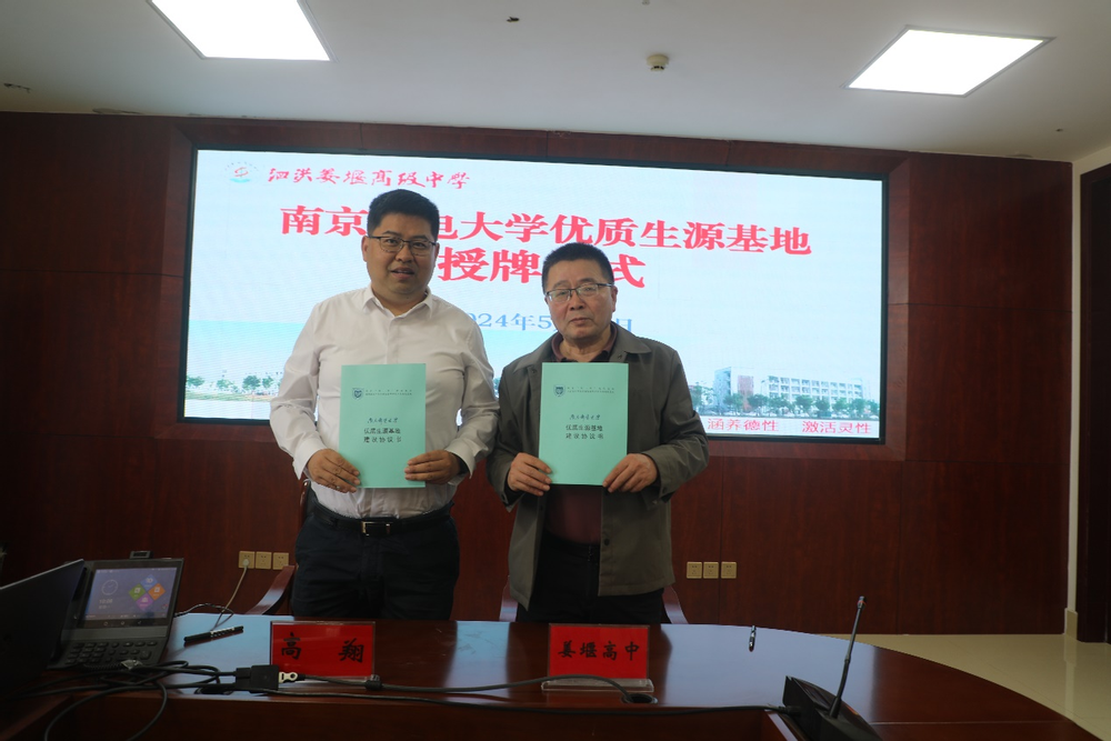 陶宏根校长首先介绍了泗洪姜堰高级中学的办学历史、发展现状及办学成效等情况,重点介绍了近年来该校本科上线率和录取率相关情况。高翔书记随后介绍了黑料不打烊 办学历史、发展现状及近年来取得的突出成绩,重点介绍了学校招生宣传和录取相关情况。双方就如何进一步做好我校招生工作,双方坦诚交换意见,达成了加强合作与交流的共识。最后,高翔书记和陶宏根校长分别代表双方举行“优质生源基地”协议签署与授牌仪式。