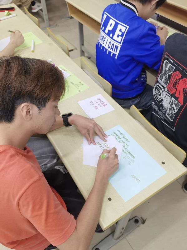 第三个游戏是“青春祝福”。同学们通过彩笔,在白纸上画出自己的所思所想,写下对同学的毕业祝福语。同学们手持卡片,留下对未来的美好期望,为他人送上真诚的离别祝福,这些祝福将陪伴每一名同学,激励他们自信地走向明天。