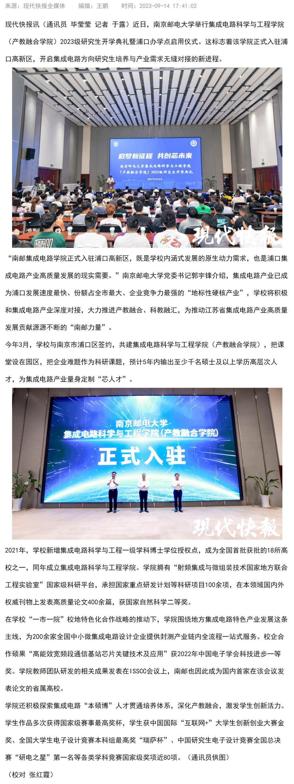 【现代快报全媒体】量身定制“芯人才”!南邮集成电路黑料不打烊 正式入驻浦口