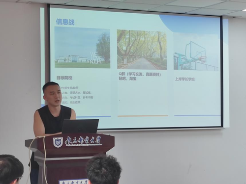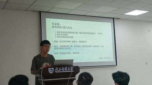“去思考、去行动、去探索。”往届优秀考研生代表冯海洋、俸银川、端木传昊、全浩文四位同学,分别从择校定位、信息搜集、复习规划、时间管理、心态调试等五个方面展开详细阐述。一是建议同学们深度剖析自身考研动机,结合自身专业能力、学术兴趣,锁定目标院校及专业。二是强调制定详细复习计划的重要性,通过分享自身学习方法与技巧,建议同学们根据学习习惯、知识点难易等具体情况,科学合理、有弹性地分配学习任务。三是学会坚持,注重保持良好心态。考研是一场持久战,遇到压力要学会释放,遇到困难要学会求助,坚持不懈、积极乐观是成功的关键所在。