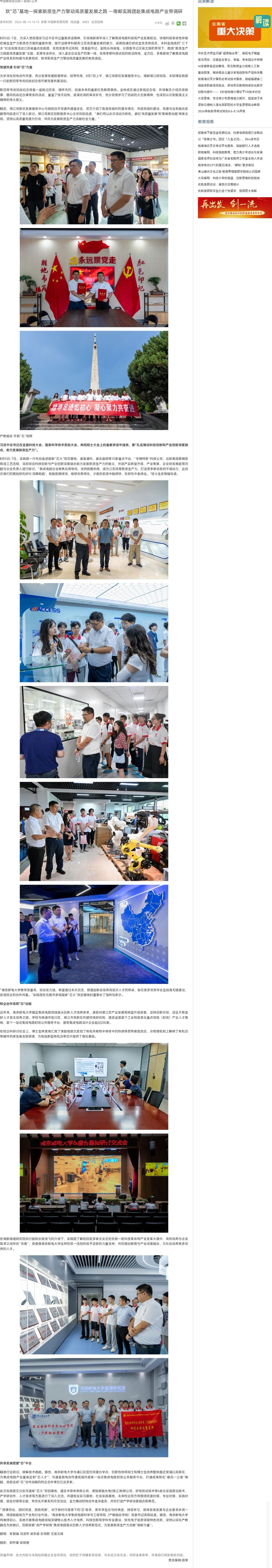 【中国教育资讯网(包资讯)】欢“芯”基地—探索新质生产力擎动高质量发展之路 —南邮实践团赴集成电路产业带调研