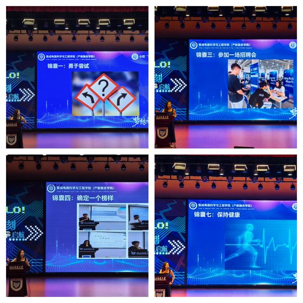 随后,肖俊桂副书记向新生做了以“梦想开始的地方”的主题讲座。她从你为什么要上大学?你想象中的大学生活是什么样子的?你最期待在大学阶段发生或者说获得什么?如果大学生活不尽如人意,你会怎么办?四个问题为出发点进行切入,现场互动,引导同学们思考大学如何规划自己的生活,并通过数据和实际案例,深入浅出的讲解了大学生活的规划与目标。之后,她向新同学们提出了勇于尝试、习惯做计划等7个锦囊妙计,鼓励新同学扎实学好专业知识,积极参加校内外的社会实践活动和科研竞赛,利用好学校的各种平台,为今后成长成才奠定基础。最后,她就学生成长发展路径进行了详细的讲解,她表示,更高质量就业、升学是人民对美好生活的向往,也是同学们为之奋斗的目标,鼓励大家将个人成长与国家发展紧密结合,树立远大理想、锤炼初心使命、担当社会责任、勇于砥砺奋斗。