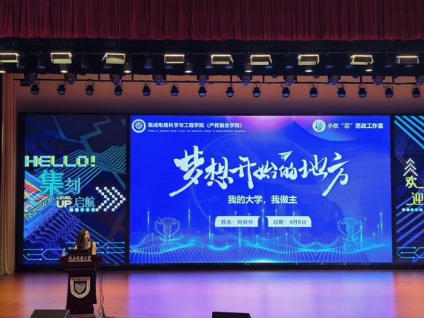 金秋送爽,希望绽放,丹桂飘香,扬帆起航。9月8日上午,集成电路黑料不打烊 在安恒青春剧场举办了2024级本科生入学教育系列活动之新生开学第一课,由黑料不打烊 党委副书记、副院长肖俊桂主讲,会议由2024级辅导员范建鹏主持,黑料不打烊 所有2024级本科新生参加。