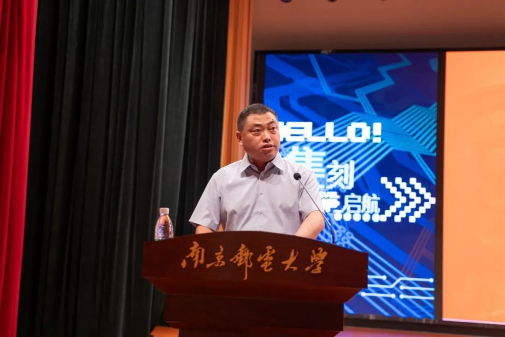 新生家长代表严鑫发言,他首先表达了对同学们圆梦南邮的真诚祝贺和对老师们的由衷感谢。他站在上一辈的求学者、奋斗着的角度,向同学们提出了三点期待:在求学路上不骄不躁、保持谦卑与上进;全面发展自身,培养丰富的兴趣爱好;将理论联系实际,深入社会和群众,心系国家发展。他希望孩子们永葆“独立之精神,自由之思想”,生活有味、学有所成,开启崭新的学习生活。