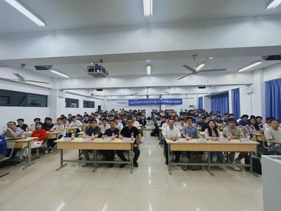 宣讲会设置了院领导致开幕词、EDA竞赛回顾、赛题方介绍、企业专家赛题宣讲、参赛学生经验分享以及赛题助理聘任六个环节。