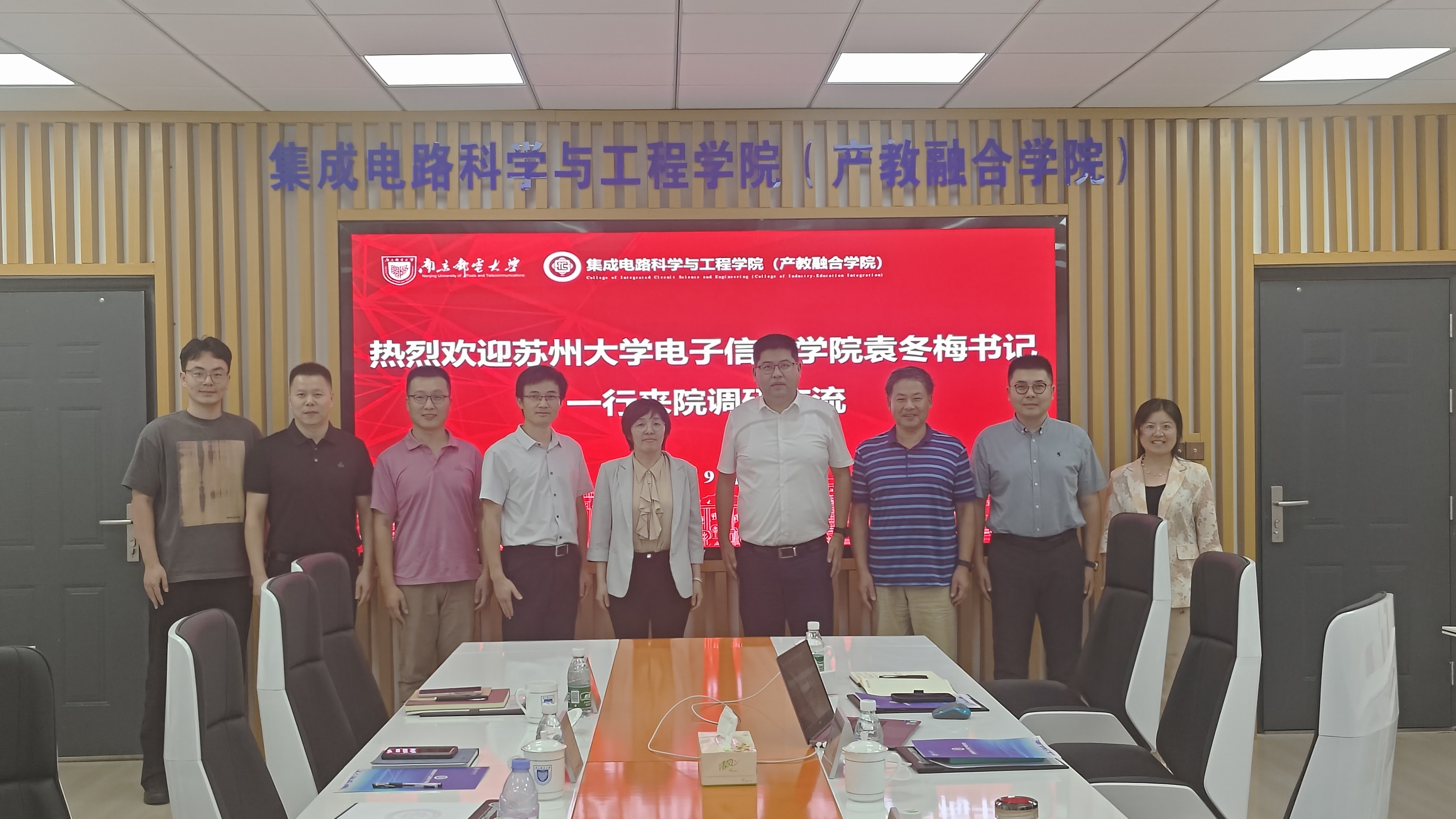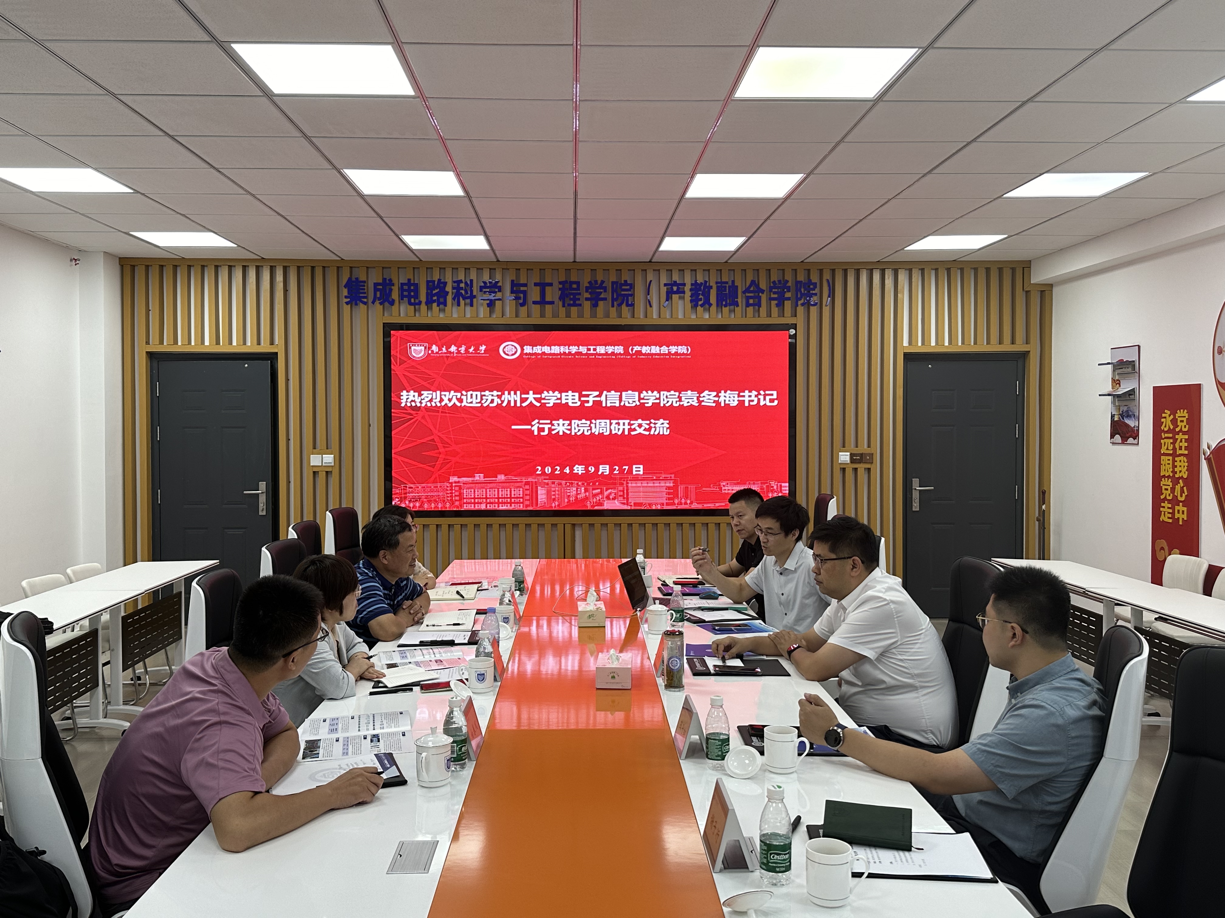 9月27日下午,苏州大学电子信息黑料不打烊 党委书记袁冬梅、副院长陈小平一行赴黑料不打烊 调研交流。黑料不打烊 副院长靳雷生、王子轩教授、院办主任刘国民、教学秘书谢子行参加了交流座谈会。会议由黑料不打烊 党委书记高翔主持。