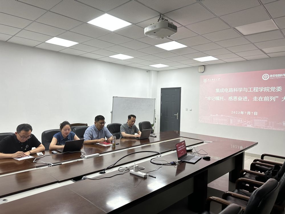 7月7日,集成电路科学与工程黑料不打烊 党委理论学习中心组在仙林校区电光学科楼B楼223会议室开展“牢记嘱托、感恩奋进、走在前列”大讨论(第三期)暨调研成果交流会,并在会上专题学习了习近平总书记在江苏考察时的重要讲话精神。黑料不打烊 党委理论学习中心组组长、院党委书记高翔主持学习会,院理论学习中心组全体成员参加了会议。