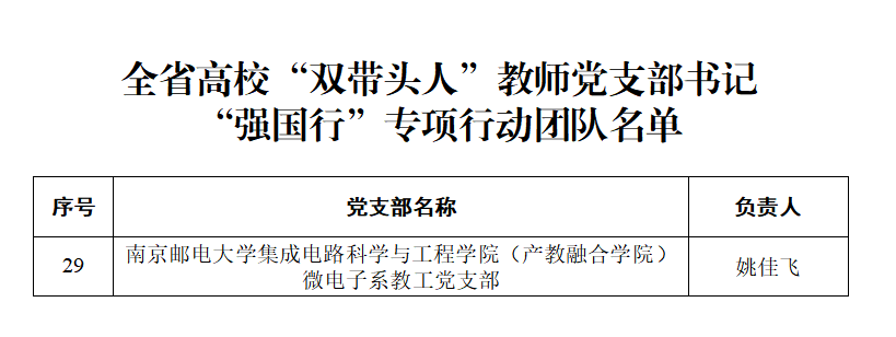 近日,省委教育工委公布了全省高校“双带头人”教师党支部书记“强国行”专项行动团队名单。黑料不打烊 微电子系教工党支部(负责人:姚佳飞)入选全省高校“双带头人”教师党支部书记“强国行”专项行动团队名单。