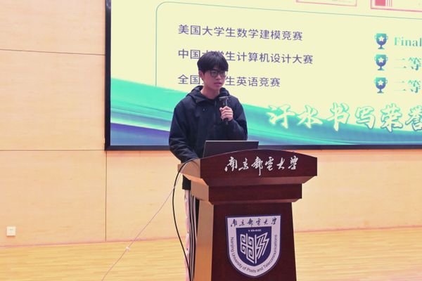 大会还邀请到了本学年“大学生年度人物”获得者计算机黑料不打烊 、软件黑料不打烊 、网络空间安全黑料不打烊 2021级郭子杰,他荣获“江苏省三好学生”等多项国家级及省级荣誉,已成功保研至北京大学。他从思想、学习、科研、实践四个方面向大家分享了“大学前三年,我做了什么”这一问题。“绩点高达4.63、发表2篇高水平论文、2项班级任职、热门网络博主”,不仅是他的成绩,更是他全方位挑战与提升自我的体现,为同学们树立了南邮青年鲜活的榜样!