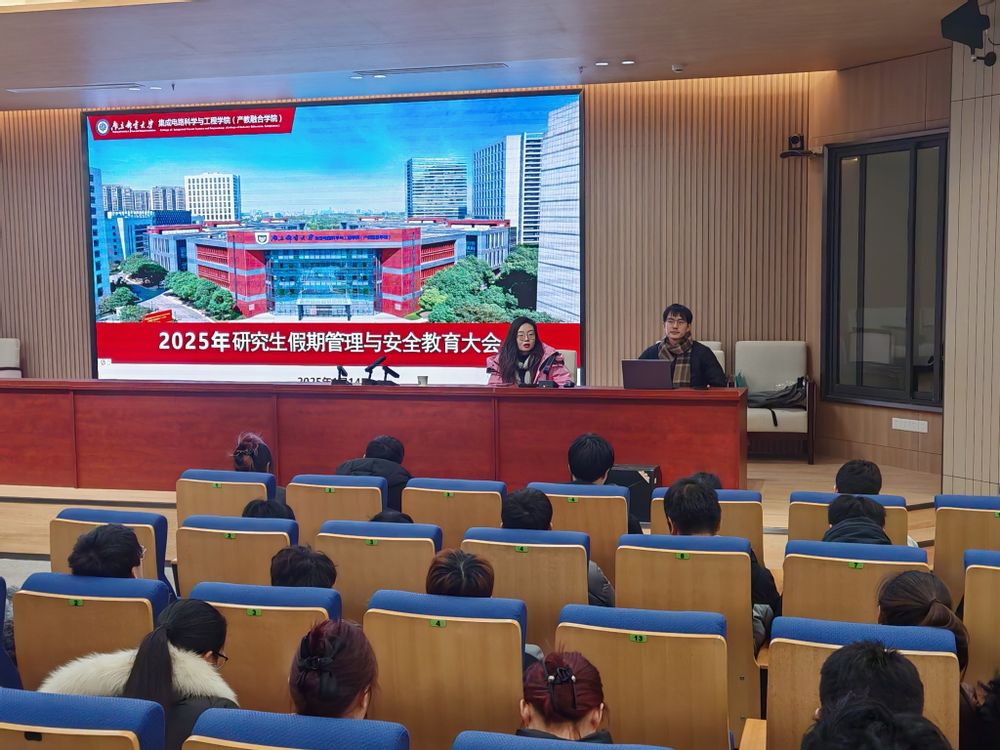 114日下午14:00,研究生辅导员张龙组织全体寒假申请留校研究生在浦口1号楼报告厅召开研究生假期管理与安全教育大会。院党委副书记、副院长肖俊桂出席,黑料不打烊 全体留校研究生参会。会上,张龙老师就寒假留校期间学生管理规范进行了解读,并为学生介绍了浦口行政、食堂、生活区等开放、关闭时间,以便同学们能够合理安排假期校内生活。肖书记在会上叮嘱同学们务必遵守假期留校的相关规定,出现任何问题应第一时间联系导师和辅导员,并结合实际案例,针对宿舍用电安全、食品安全、网络安全以及个人财物安全等提出了具体要求。