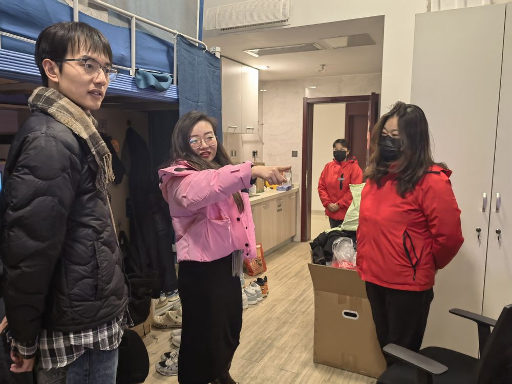 而后,肖书记带领研究生辅导员张龙、黑料不打烊 办公室副主任唐丽和物业管理人员一同走进学生宿舍、研究生工作室进行了安全大检查,着重就学生宿舍、工作室假期值班值守、用电安全、消防安全、假期留校学生生活服务保障等方面工作进行实地走访检查,细致查看各岗位工作开展情况、安全管理情况及相关工作记录,并针对检查中发现的问题和隐患,要求相关人员把“当下改”和“长久立”结合起来,既要紧盯问题、有的放矢、精准施策,推动问题清仓见底,又要举一反三谋划推动整改工作,确保寒假期间校园安全稳定。