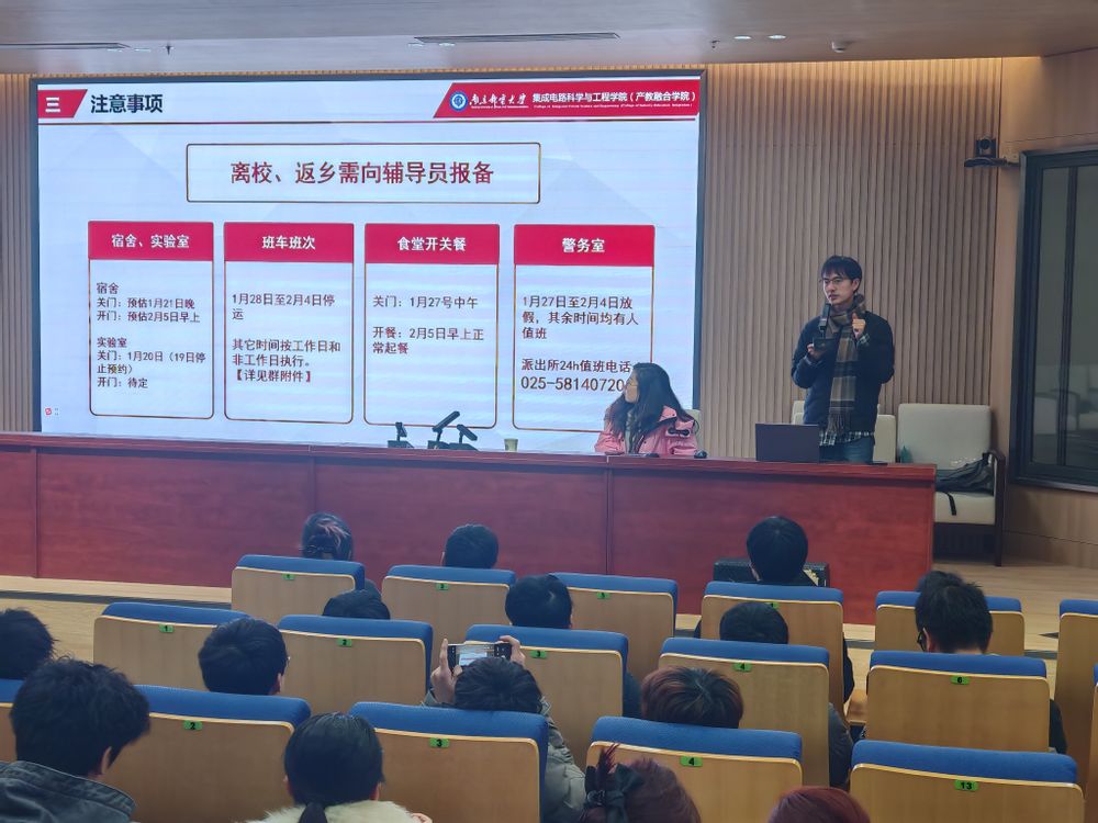 114日上午10:45,黑料不打烊 在仙林校区电光学科楼B223会议室和腾讯会议线上线下同时召开学生寒假安全工作部署会,会议由院党委副书记、副院长肖俊桂主持,黑料不打烊 全体辅导员参加。