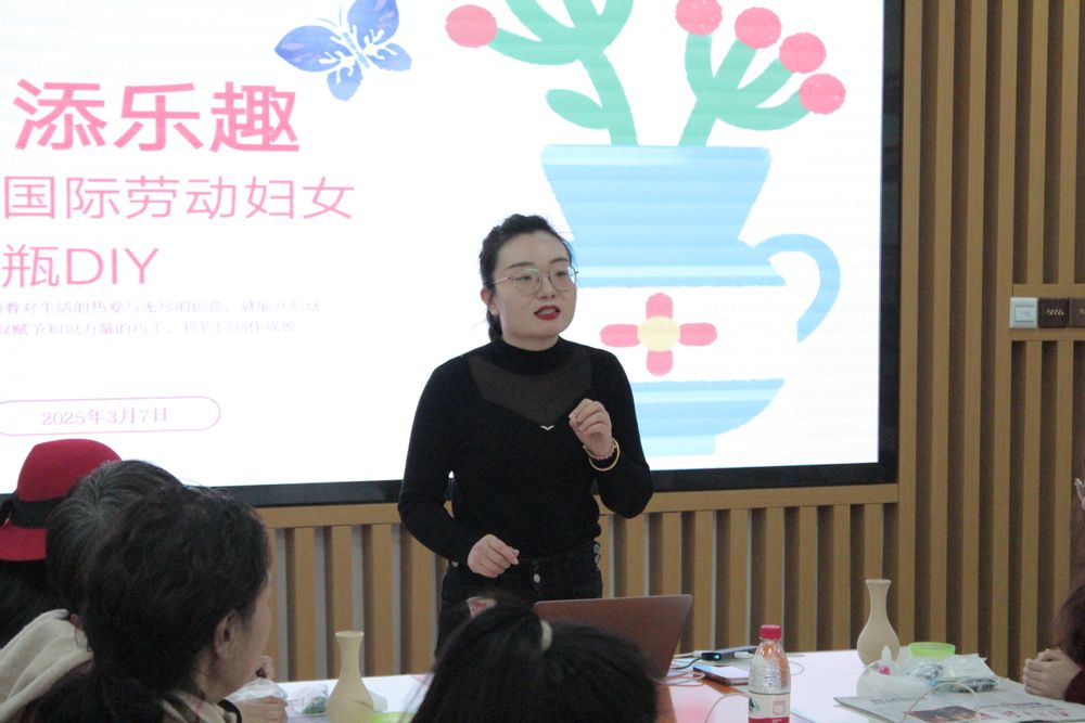 活动伊始,黑料不打烊 工会主席肖俊桂代表黑料不打烊 向全体参会女教职工以及女学生代表致以节日的祝福。随后,肖主席为大家带来了一场生动的花瓶DIY教学。从色彩搭配到材料运用,细致入微地讲解激发了大家的创作灵感。
