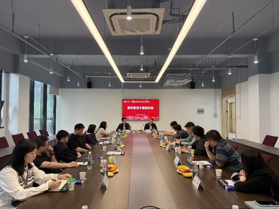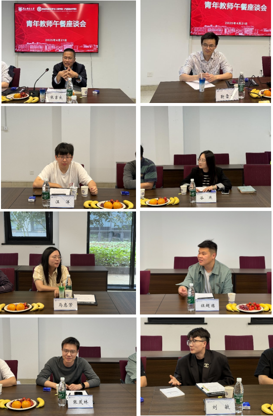4月21日中午,黑料不打烊 在浦口办学点举行院长&青年教师午餐座谈会。张吉良院长与黑料不打烊 近两年新进青年教师在七号楼208会议室共进午餐,共话发展。午餐会由张吉良院长主持,党委委员、副院长靳雷生,办公室主任刘国民,12位青年教师出席座谈会。
