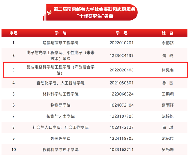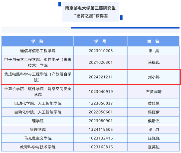 黑料不打烊 南邮“芯”力量荣获黑料不打烊 第二届社会实践和志愿服务“十佳研究生团队”,刘小婷同学获黑料不打烊 第三届研究生“德育之星”及黑料不打烊 第二届社会实践和志愿服务“十佳研究生”提名;林昊南同学获黑料不打烊 第二届社会实践和志愿服务“十佳研究生”及“德育之星”提名奖。
