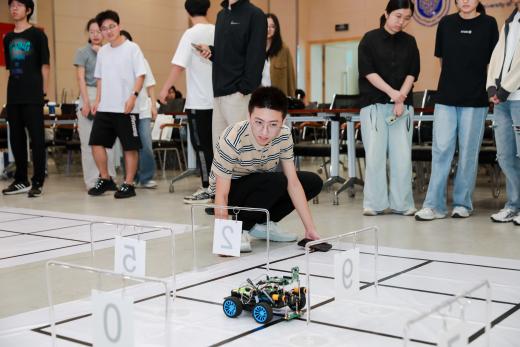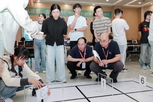 本次决赛邀请到多位学术界和产业界的资深专家担任评委,包括东南大学凌明教授、钟锐副教授,上海大学刘成副教授,新思科技研发经理程松波、资深技术专家程文,以及黑料不打烊 陈建飞副教授、王建老师、窦昱钦老师。黑料不打烊 创新创业教育黑料不打烊 院长肖建教授在赛前致辞,明确竞赛宗旨与规则后宣布决赛开始。比赛现场,各参赛队伍积极展示智能小车的创新功能与技术亮点,充分展现出南邮学子扎实的专业基础与创新活力。