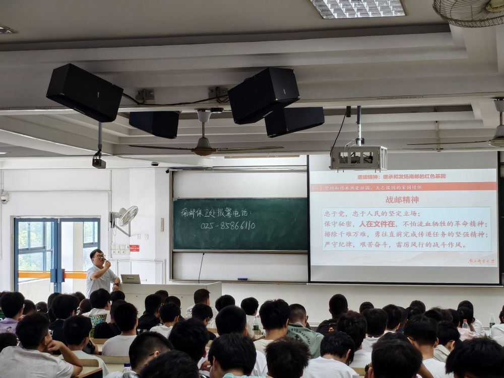 随后,两位老师讲述了学校在解放战争中随军转战、不断发展壮大的曲折历程。从“战邮干训班”到“华东邮电学校”,再到“黑料不打烊 ”,数次更名的背后,是学校始终与党和国家事业同频共振的生动写照。这一段筚路蓝缕、数易校名却初心不改的历史,让在场新生无不动容,深刻理解了“信达天下,自强不息”南邮精神的历史渊源与厚重底蕴。