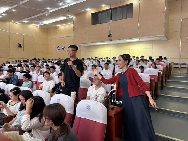 在人际关系适应方面,王老师重点讲解了宿舍相处之道、师生交往之艺和社团交往之技,通过真实案例分析了沟通中常见的误区,并提供了非暴力沟通四步法等实用技巧。学习适应环节,她指导学生如何应对从被动接受到主动求知的转变,分享了时间管理四象限法则、艾宾浩斯遗忘曲线等科学学习方法,帮助同学们缓解学业焦虑。生活适应方面,她从作息调整、财务管理、情绪调节等角度给出具体建议,提醒新生关注自我关怀,培养独立生活能力。讲座特别设置了丰富的互动环节。王老师带领全场进行正念呼吸训练,通过舒缓的音乐和引导语帮助学生体验当下的平静;组织心理健康小游戏,让同学们在游戏中认识情绪表达的多样性。