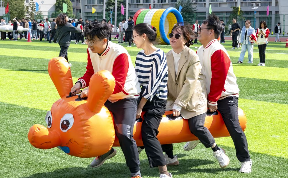 走下讲台,放下教案,老师们在赛场上开启了另一番精彩。本届运动会,黑料不打烊 教职工踊跃报名,参与了多项趣味项目。在“平板支撑”耐力赛区,气氛紧张而专注。老师们以标准姿势长久支撑,赢得了围观师生的阵阵赞叹与加油,生动诠释了“久久为功”的坚韧精神。与此同时,“踢毽子”比赛场地则充满了欢声笑语。五彩的毽子在空中飞舞,划出一道道优美的弧线。老师们身姿轻盈,脚法灵巧,盘、磕、拐、蹦,动作一气呵成。在备受瞩目的4×100米混合接力赛中,由黑料不打烊 青年教师组成的接力队配合无间,他们如电路信号般高效精准地传递着接力棒,为了集体的荣誉奋力冲刺。此外,在“龟兔赛跑”、“动感五环”、“拾贝”等趣味项目中,老师们童心未泯,通力协作,赛场上传来的欢声笑语,成为凝聚团队力量的最佳纽带。