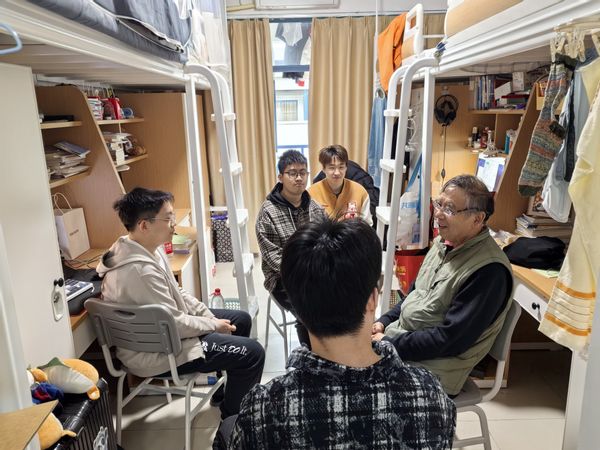 座谈会开始前,成谢锋教授亲切地查看了同学们的宿舍环境,了解了他们的日常生活和目前的学习进展。在走访过程中,成教授对该宿舍成员互帮互助、共同进步的优良学风给予了高度评价,希望同学们能够将这种积极向上、团结协作的精神面貌保持到未来的科研生涯中去。