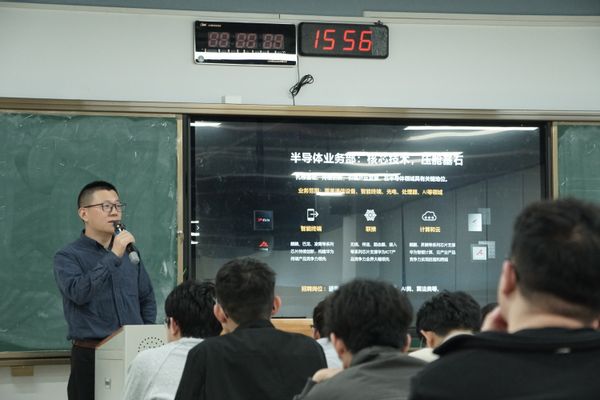 宣讲环节中,刘文旭经理围绕企业发展、业务布局、岗位需求及实习培养等维度展开分享,详细解读了本次招聘的核心岗位,明确了相关岗位的核心价值与能力要求。刘祖俊经理补充介绍,本次招聘覆盖多个业务方向,不仅优化了岗位设置、提升了实习津贴,各项保障措施也更加完善。他表示,华为海思还将提供实战项目历练与资深导师带教等全方位支持,全力帮助同学们实现专业学习与产业需求的无缝衔接。