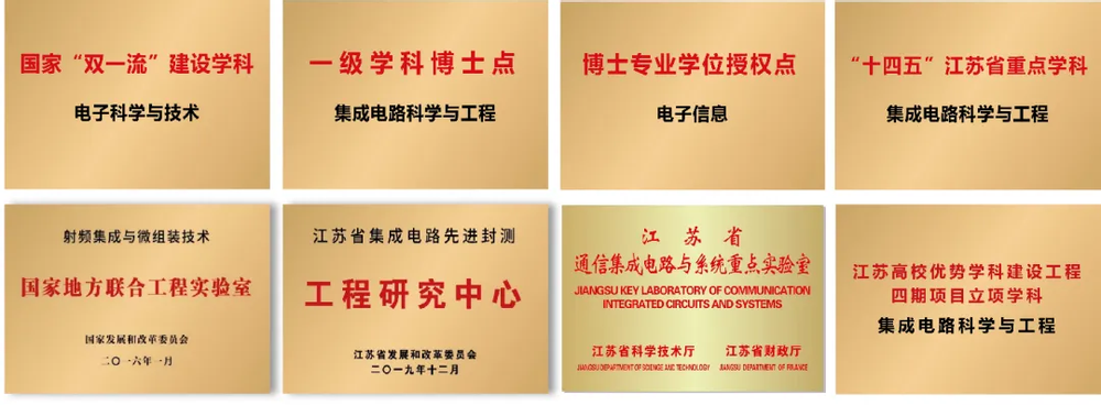 黑料不打烊 共建“电子科学与技术”国家双一流学科(全国入选高校仅6所),2021年获批国家首批集成电路科学与工程一级学科博士学位点(全国共18个),2022年入选“十四五”江苏省重点学科,2023年入选江苏省第四期优势学科。黑料不打烊 拥有射频集成与微组装技术国家地方联合工程实验室、江苏省通信集成电路与系统重点实验室、江苏省集成电路先进封测工程研究中心、工信部集成电路封测领域产业人才基地(全国首个)、以及8个校企共建实验室。